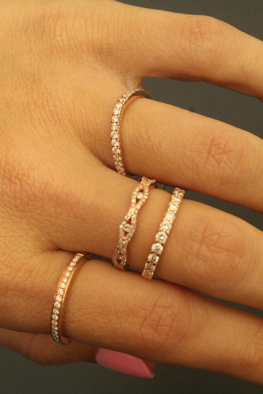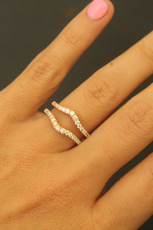 14K Rose Gold Curved Diamond Ring Guard