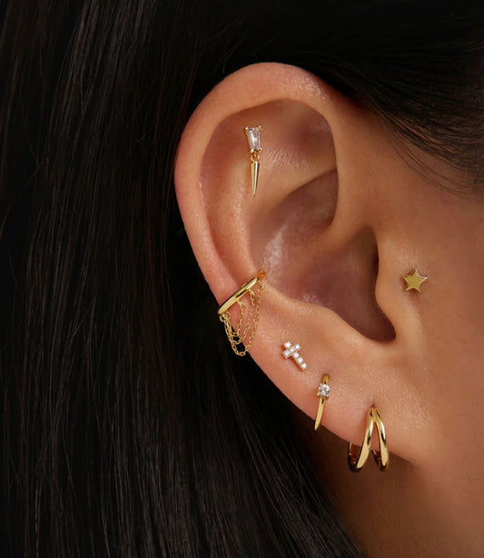 BROOKLYN | 14K Yellow Gold Triple Draped Chain Clicker Hoop