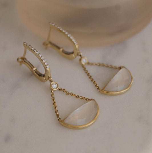 18K Yellow Gold Mother of Pearl Diamond Drop Earrings