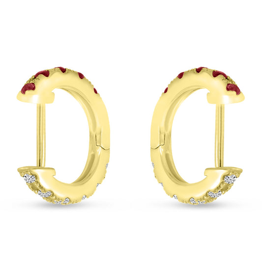 14k Yellow Gold Reversible Ruby/Diamond Huggies