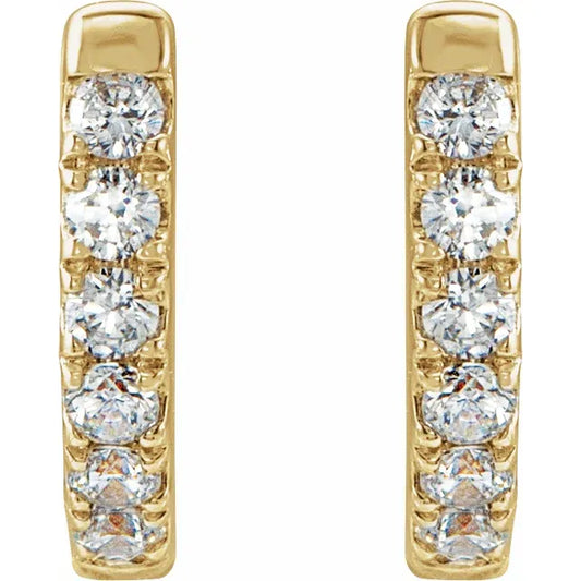 14K Yellow Gold Diamond Huggie Hoop Earrings