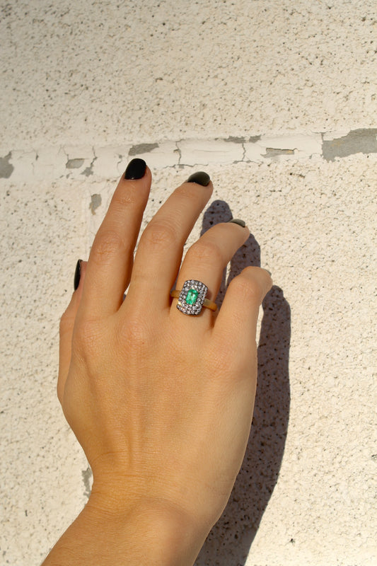 14K Yellow Gold Emerald Cut Emerald & Diamond Ring
