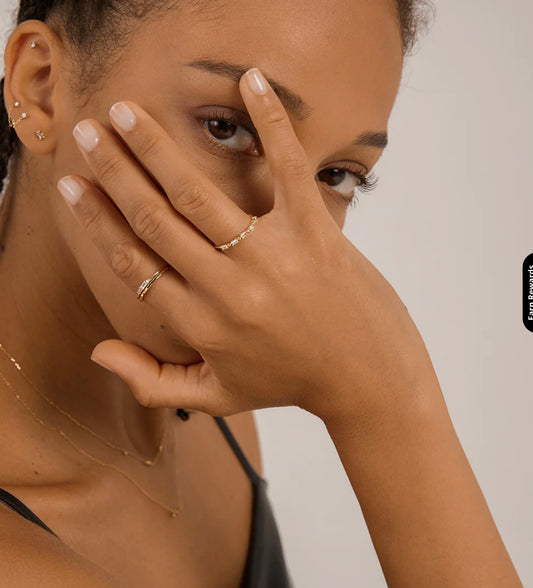 LUNA | 14K Yellow Gold Baguette and Round White Sapphire Band Ring