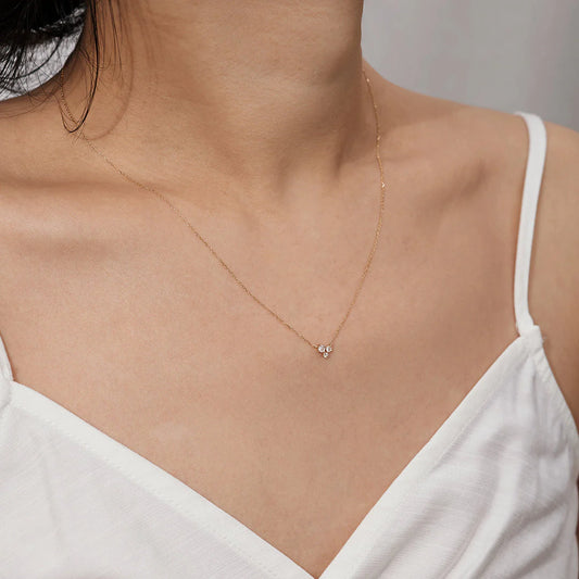 INEZ | 14K Yellow Gold Triple Diamond Necklace