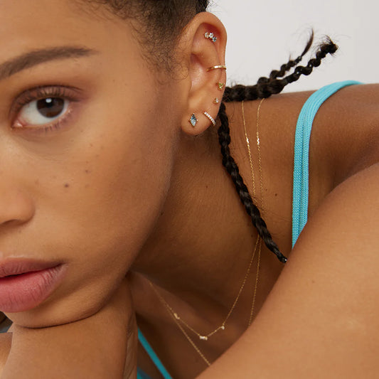 Audrey | 14K Yellow Gold Rose Cut White Sapphire Single Huggie Hoop