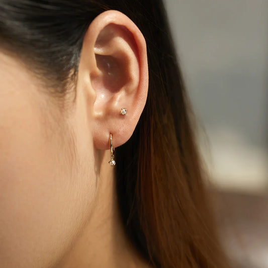 HELENA | 14K Yellow Gold White Pearl Dangle Huggie Hoop