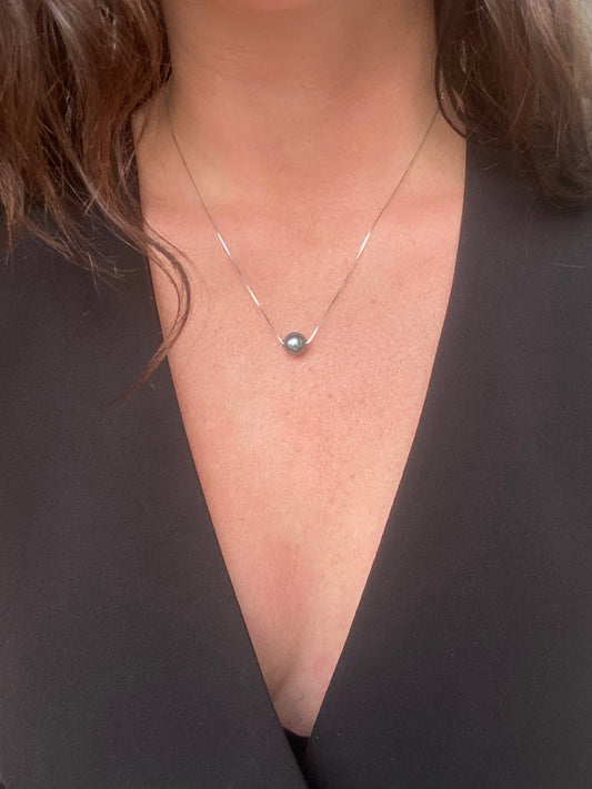14K White Gold Light Blue Tahitian Pearl Necklace