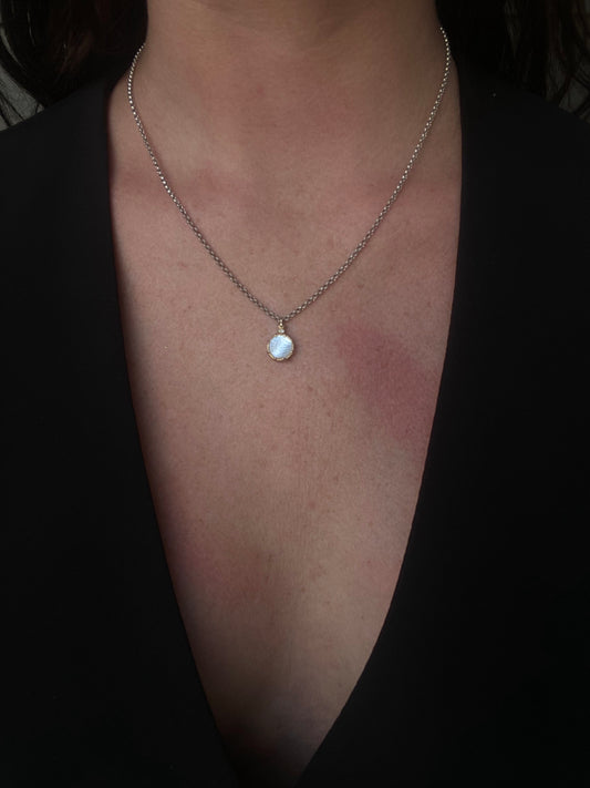 18K Yellow Gold Mother of Pearl Starburst Necklace