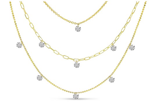 14K Yellow Gold Trio Dashing Diamonds Necklace