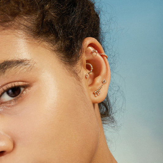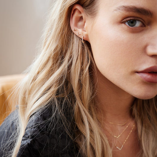 PEYTON | 14K Yellow Gold White Sapphire Piercing Earring Front