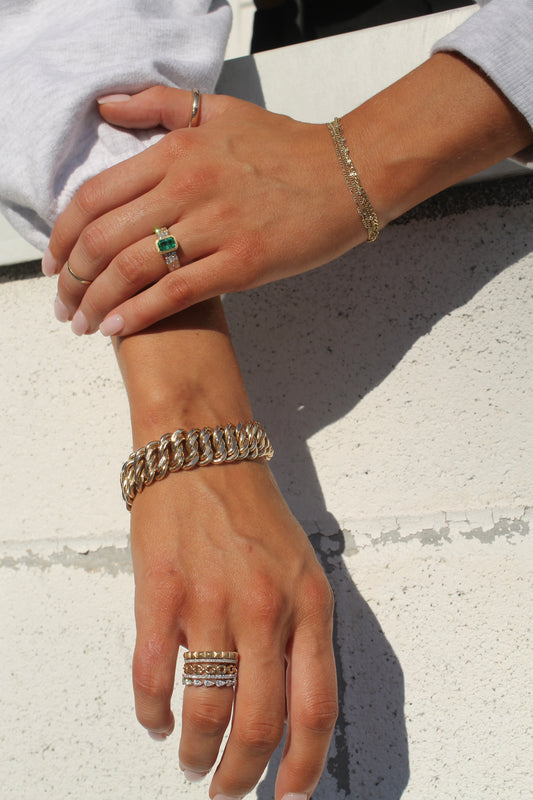 14K Yellow Gold 2.85ctw White Topaz Baguette Cigar Band