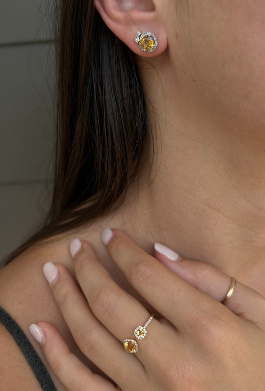 14K Yellow Gold Citrine Duo Offset Cushion Ring