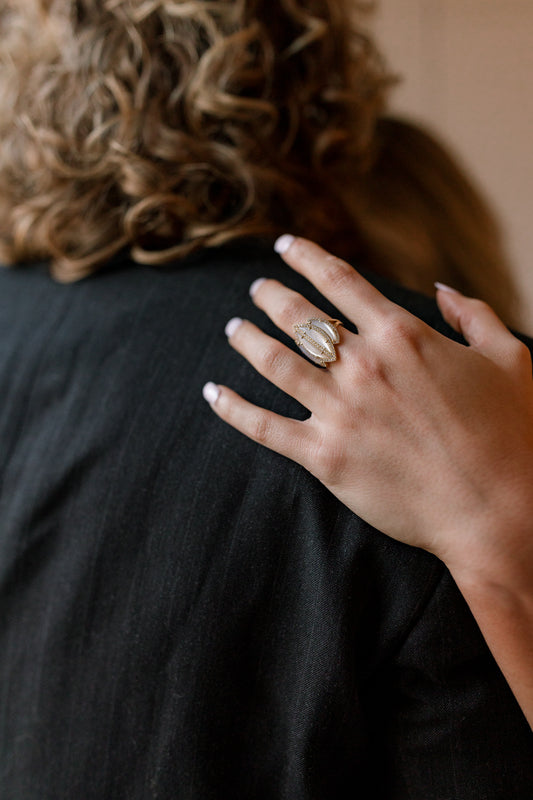 18K Yellow Gold Mother of Pearl & Diamond Ring