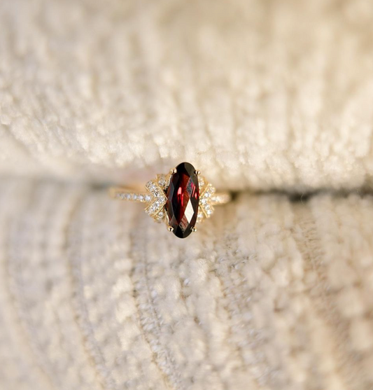 14K Yellow Gold Oval North/South Garnet & Diamond Art Deco Ring
