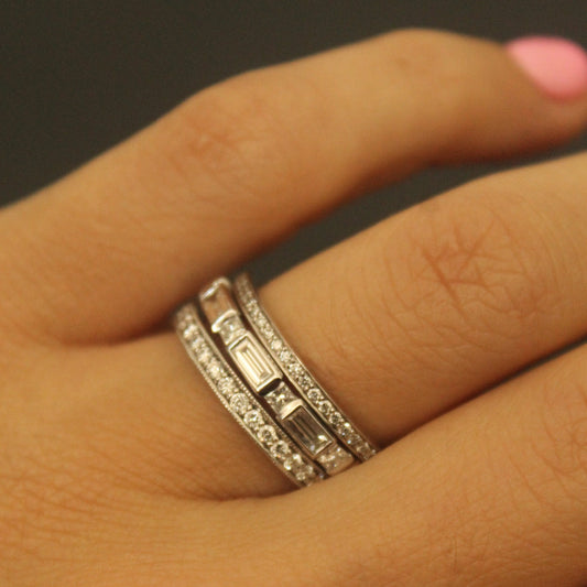 Platinum .35ctw Baguette Diamond Slim Stacker Band